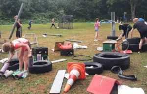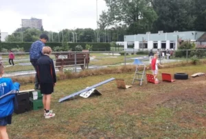 Al voor de derde keer verzorgt SpelenMaar samenspeel-workshops tijdens de SAM zomerweek van Sportservice de Vallei in Wageningen. Vorig jaar gingen we aan de slag met de coöperatieve spellen als de parachute en zweefbord. Dit jaar waren we present met een volle kar vol speelspullen. We begonnen met de vraag; zoek iets om op te zitten gevolgd door “zoek nu iets dat je zitplek leuker/spannender/maffer maakt. Daarna kort gesprek over dat je eigenlijk overal wel op kunt zitten (soms geen goed idee, bv op een speld, maar het kan wel!) en dat je dus ook met alles kunt spelen. Ten minste, kinderen kunnen dat :-). Daarna was het spelenmaar en aan het eind elkaars bouwsels/hindernisparcoursen etc. uitproberen/bewonderen.