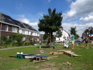 Rond 3 uur waren er wel 60 kinderen aan het spelen. De BSO om de hoek was ook met 29 kinderen gekomen. Super gezellig en er werd flink gespeeld. De boom werd weer een hut, het klimtoestel een roversnest én chill plek, er ontstonden een steopkrijt-keukens, knikkerbanen en nog veel en veel meer. Een top editie Spelenmaar kindercultuurzomer